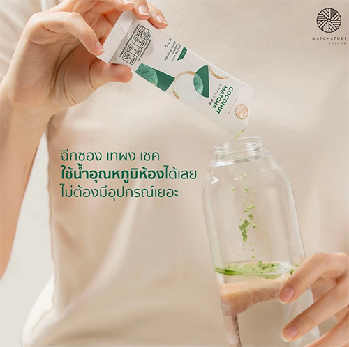 ตอนนี้มีมัทฉะตัวใหม่ ที่ผสมผงมัทฉะกับน้ำมะพร้าวในซองเดียวกันเลย ผสานมัทฉะแท้จากญี่ปุ่น กับความหอมหวานของน้ำมะพร้าวธรรมชาติ เพื่อสุขภาพที่ดีและความสดชื่นในทุกวัน