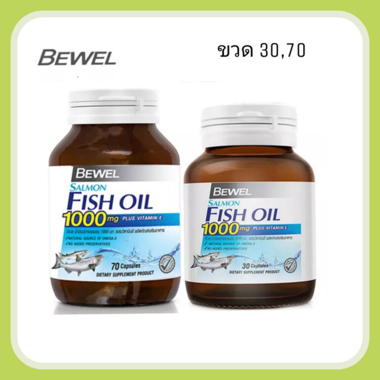 Bewel Salmon Fish Oil Plus Vitamin E 1000mg 30, 70 Capsules ผลิตภัณฑ์เสริมอาหารน้ำมันปลาแซลมอน ผสมวิตามินอี มีโอเมก้า 3 ข้อมูลผลิตภัณฑ์
