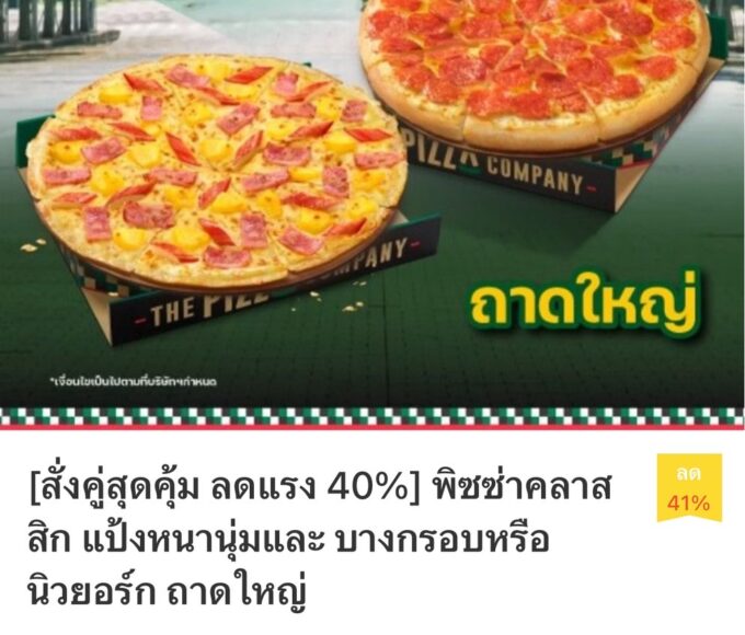 ByadminSeptember 20, 2025รายละเอียดโปร ซื้อพิซซ่า 2 ถาดใหญ่ ลดทันที 40% ราคา จาก 978 บาท เหลือเพียง 579 บาท เลือกได้ทั้งแป้ง หนานุ่ม, บางกรอบ หรือ นิวยอร์ค เฉพาะพิซซ่าคลาสสิก ขนาดใหญ่ ความคุ้ม ราคาเฉลี่ยถาดละ 289.5...