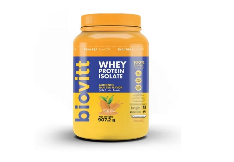 Biovitt Whey Protein Thai Tea 33.2% เป็นเวย์โปรตีนรสชาติชาไทยเข้มข้น อร่อย ดื่มง่าย เหมาะกับผู้ที่ต้องการเสริมสร้างกล้ามเนื้อและควบคุมน้ำหนัก อย่างไรก็ตาม ราคาค่อนข้างสูงเมื่อเทียบกับเวย์โปรตีนยี่ห้ออื่นๆ